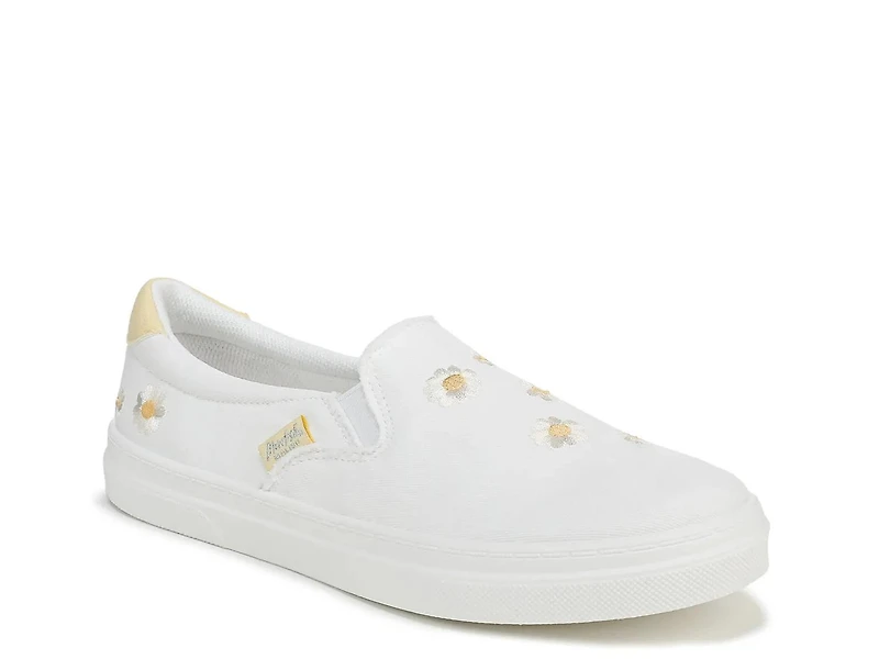 The Havasu slip-on sneaker by Blowfish Malibu features a lightweight fabric upper, dual elastic gores for a secure fit, and a breathable mesh lining. The embroidered daisy flowers add a fun finish!