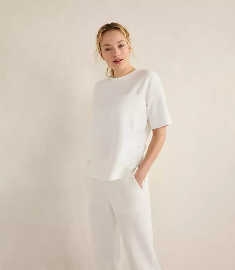 Haven Well Within. A thoughtful collection of lounge, sleep home and lifestyle essentials your trusted resource for all things wellbeing. Beautifully textured and supremely soft, this versatile tee is ideal for lounging on the sofa, mid - day errands or sunset strolls. Pair it with the matching pants for a complete head - to toe look. Crew neck Short sleeves Chest pocket, Hit: Hits at hip, Imported:, Length: 23 1/2"long, Fabrication: 64% Cotton 31 Polyester 5 Spandex, Garment Care: Machine Washable Loft Haven Well Within Cotton Blend Textured Crewneck T - Shirt Size Small Ivory Women's by Loft Size Regular - S Ivory Women's 64%, Cotton 31% Polyester 5% Spandex Machine Washable