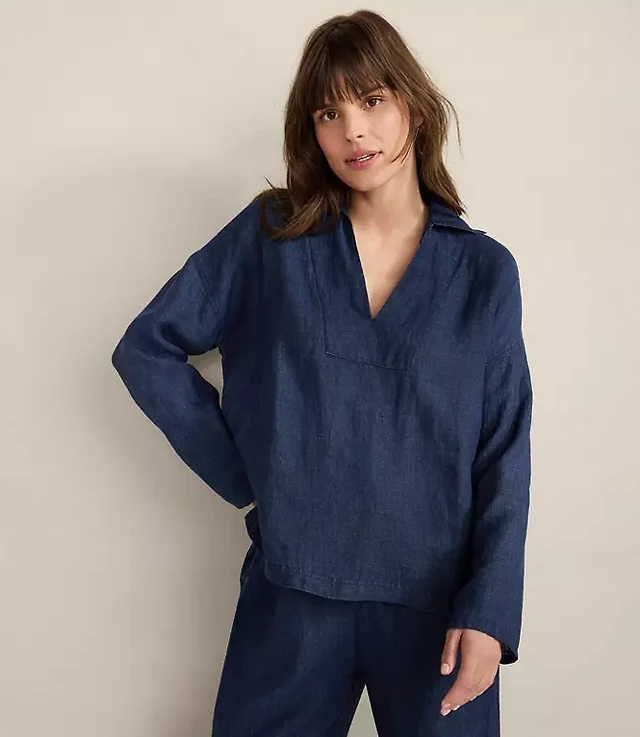 Haven Well Within Linen Collared Long Sleeve Top