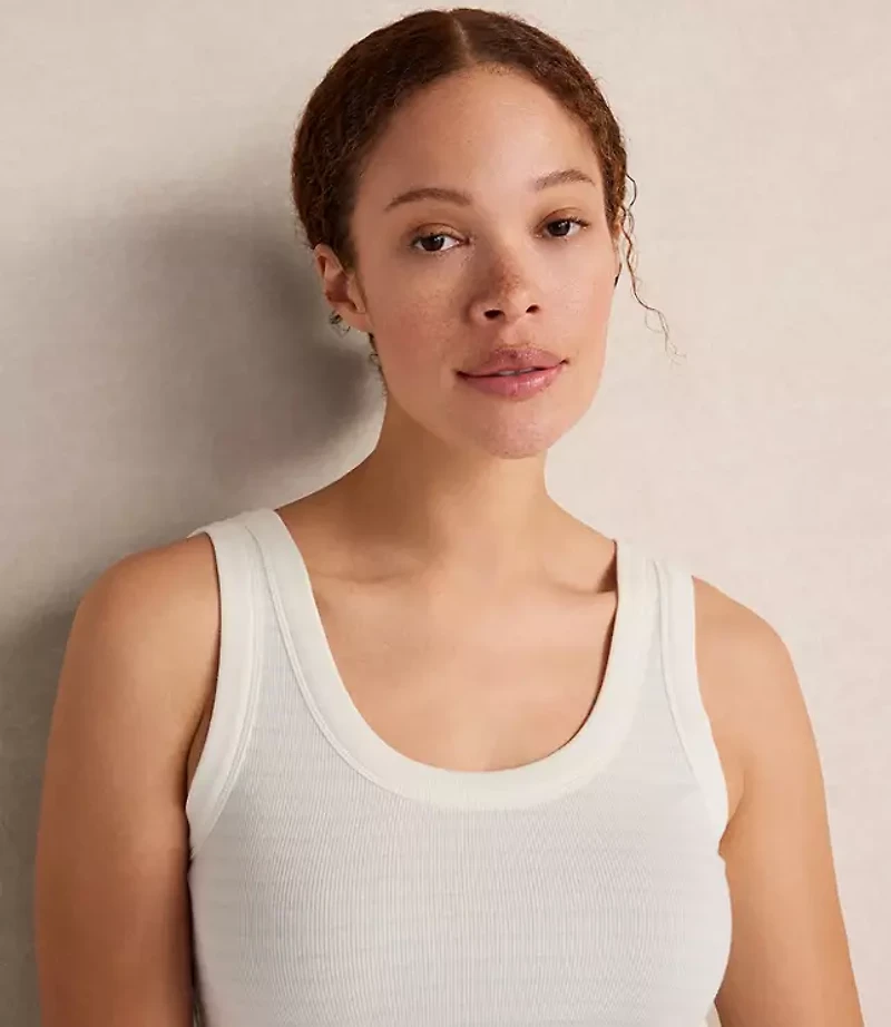 Haven Well Within. A thoughtful collection of lounge, sleep home and lifestyle essentials your trusted resource for all things wellbeing. Meet your new favorite tank from The Effortless Edit Collection. Crafted from organically grown cotton in a delicate stripe pattern, it features wide, bra - friendly straps and a flattering scoop neckline for a go - anywhere look., Hit: Hits slightly above hip, Imported:, Length: 23 1/2"long, Fabrication: 92% Organically Grown Cotton 8% Spandex, Garment Care: Machine Washable Loft Haven Well Within Organic Cotton Delicate Stripe Scoop Neck Tank Top Size XS Ivory Women's by Loft Size Regular - XS Ivory Multi Women's Cotton, Blend Scoop Neck Sleeveless Tanks & Shells Tops Casual Chic 92% Organically Grown Cotton 8% Spandex Machine Washable