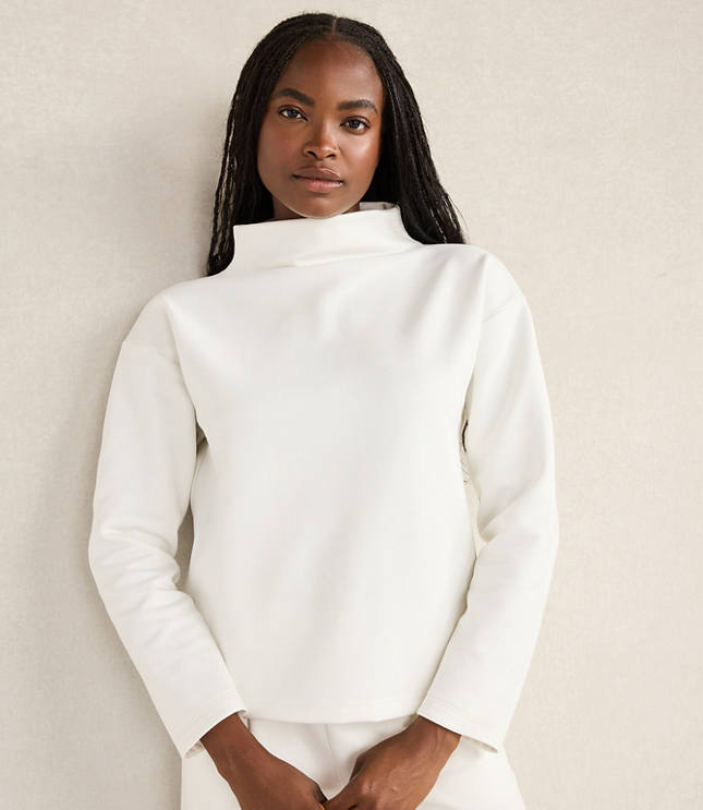 Haven Well Within. A thoughtful collection of lounge, sleep home and lifestyle essentials your trusted resource for all things wellbeing. Ease your mind and all your senses with this reposeful pullover. Its marshmallow - soft feel and chic funnel neck bring relaxation to a whole new level. Make it a set with the matching wide leg pants., Hit: Hits at hip, Imported:, Length: 24 1/2"long, Fabrication: 53% LENZING ECOVERO Viscose 42% Recycled Polyester 5% Spandex, Garment Care: Machine Washable Loft Haven Well Within Soft - Brushed Fleece Funnel Neck Pullover Size Small Ivory Women's by Loft Size Regular - S Ivory Women's Funnel, Neck Long Sleeve Pullover Tops Casual 53% LENZING ECOVERO Viscose 42% Recycled Polyester 5% Spandex Machine Washable