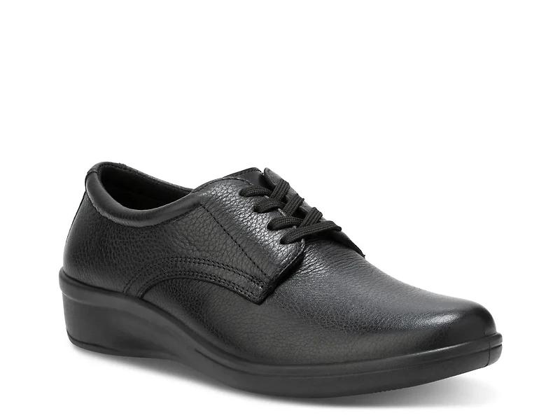 The Hayden oxford from Eastland features a sleek, streamlined design with a subtle wedge heel. This versatile shoe transitions smoothly from errands to office hours and casual outings, combining a round toe and fabric lining for a balance of modern style and everyday comfort.