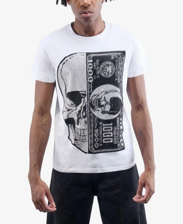 heads or tails Men's Skull And Money Rhinestone Crew T-Shirt