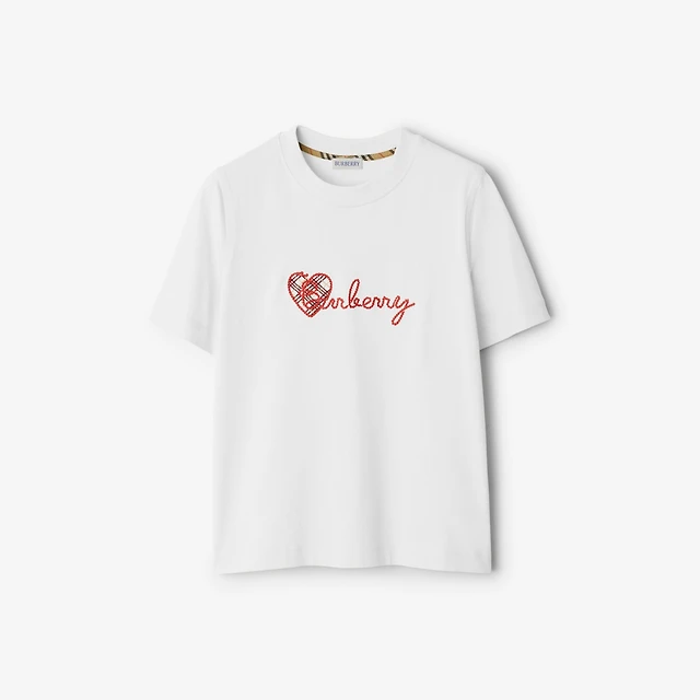 Heart Logo Cotton T-shirt in Chalk white - Women | Burberry® Official