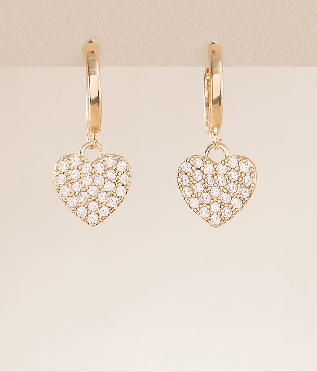 14k Gold Plated Elongated Heart Charm Dangle Mini Hoop Earrings