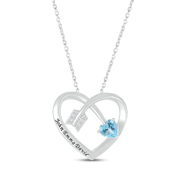 Heart-Shaped Swiss Blue Topaz & Round-Cut White Lab-Created Sapphire Heart & Arrow Necklace Sterling Silver 18”
