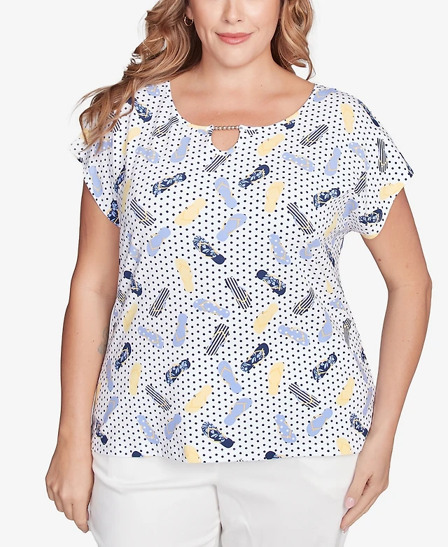 Hearts Of Palm Plus Making Waves Flip Flop Print Top