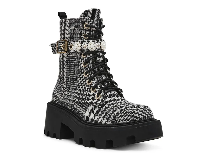 Let your feet do the talking with the Heathr bootie from Betsey Johnson. Whether it's the vibrant knit-like fabric, or ankle strap with whimsical beads, or the chunky platform and block heel, you'll never fail to turn heads with this round toe bootie.
