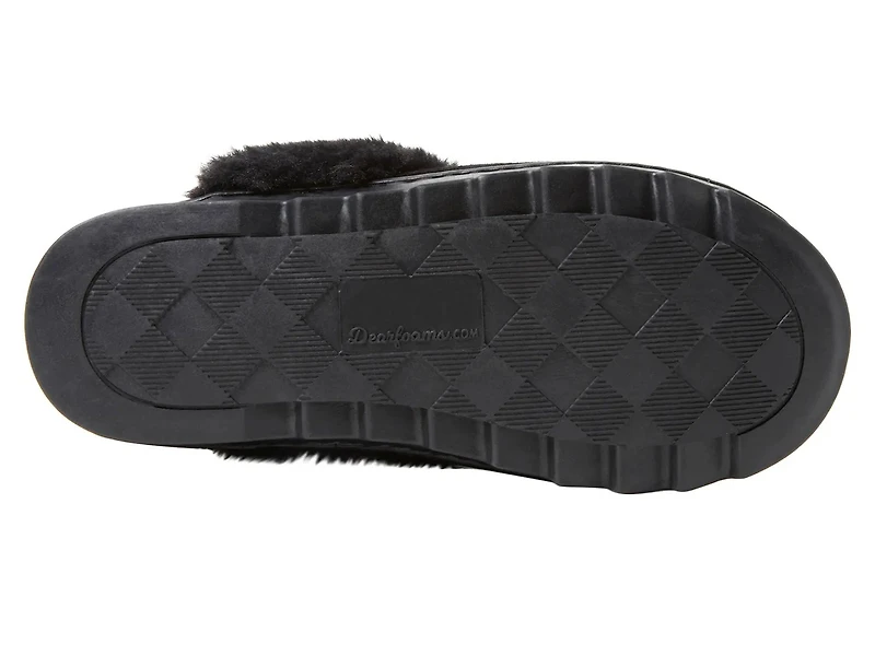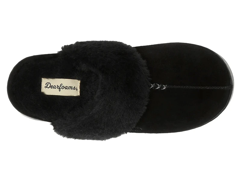 Get ready to lounge in the Helena Scuff slipper from Dearfoams. This genuine suede pair sports memory foam cushioning, temperature regulating design, and a durable sole for a well-rounded add to your look, whether indoors or out.