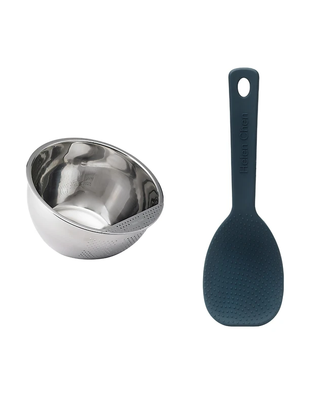 Helen's Asian Kitchen Rice Kit with Stainless Steel Japanese Rice Washing Bowl and Silicone Never Stick Rice Paddle