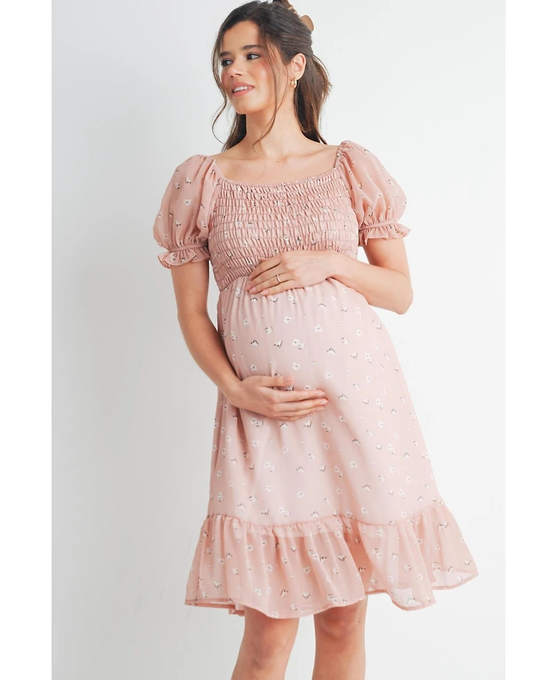 Hello Miz Maternity Floral Smocked Empire Waist Knee-Length Dress