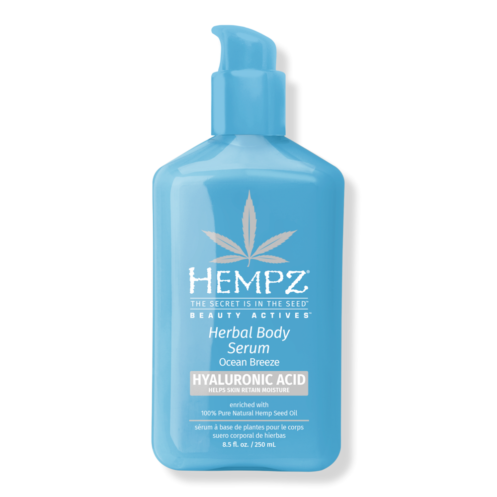 OCN BRZ HRBL BDY SRM W HLRNC ACD 8.5OZ. Benefits: 2-in-1 body serum that hydrates, firms, and smooths skin. Plumps skin, reducing the appearance of fine lines. Deeply hydrates to reduce redness, dryness, and flaking. Features: Paraben-free. Gluten-free. 100% Dye-free. THC-free. Key Ingredients: Hemp Seed Oil - rich in omega fatty acids to protect skin and seal in moisture. Hydraluronic Acid helps retain skin's natural moisture.