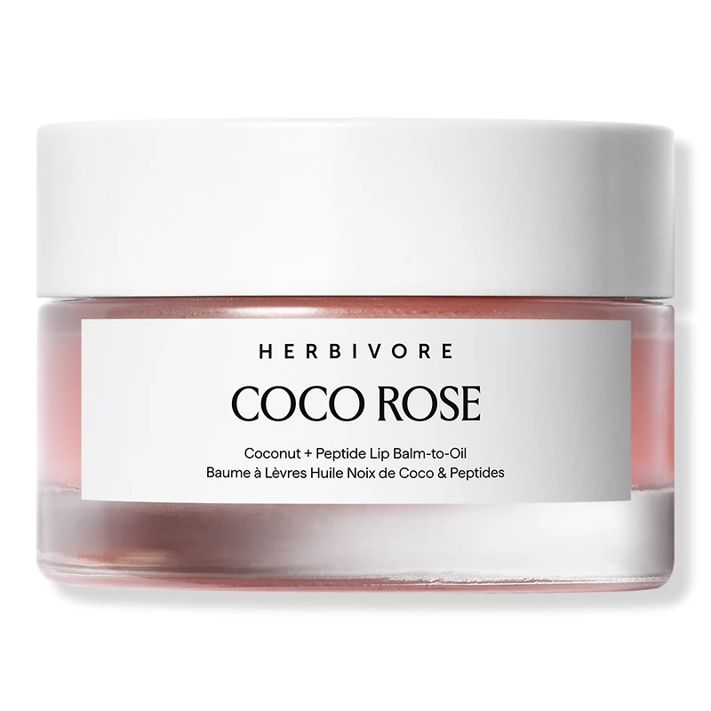 COCO ROSE LIP BALM TO OIL 0.45OZ. Benefits: Replenishing lip balm that melts into an oil upon application and applies clear.. Helps seal in moisture to soften, smooth, and hydrate lips.. Supports barrier repair and moisture retention.. Use for instant moisture and shine or apply overnight as replenishing lip mask.. Naturally flavored with notes of coconut, rose, sweet berry, and vanilla bean.. Features: Paraben free. Lip care powered by plant-actives.. Recyclable glass jar and FSC-certified paper carton.. Key Ingredients: Plant peptide: Helps replenish and restore cushion to dry lips.. Tremella mushroom: A powerful natural hydrator that can hold up to 500 times its own weight in water, functioning similarly to hyaluronic acid by pulling water into the skin.. Vegan squalane: An ultra-lightweight oil that seals in moisture to help keep lips feeling supple.. Shea butter: Deeply nourishing butter that softens and replenishes dry lips..