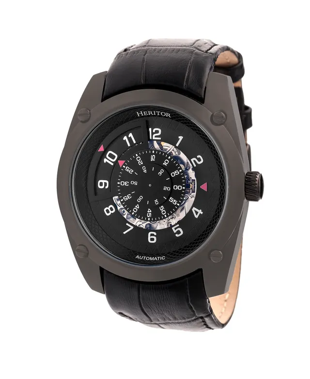 Heritor Automatic Daniels Black Leather Watches 43mm