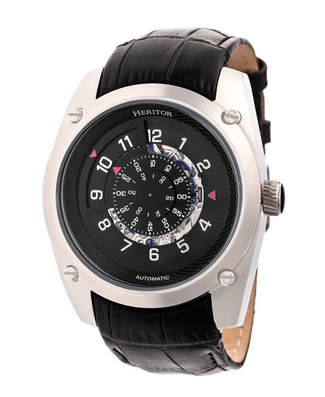 Heritor Automatic Daniels Silver & Black Leather Watches 43mm