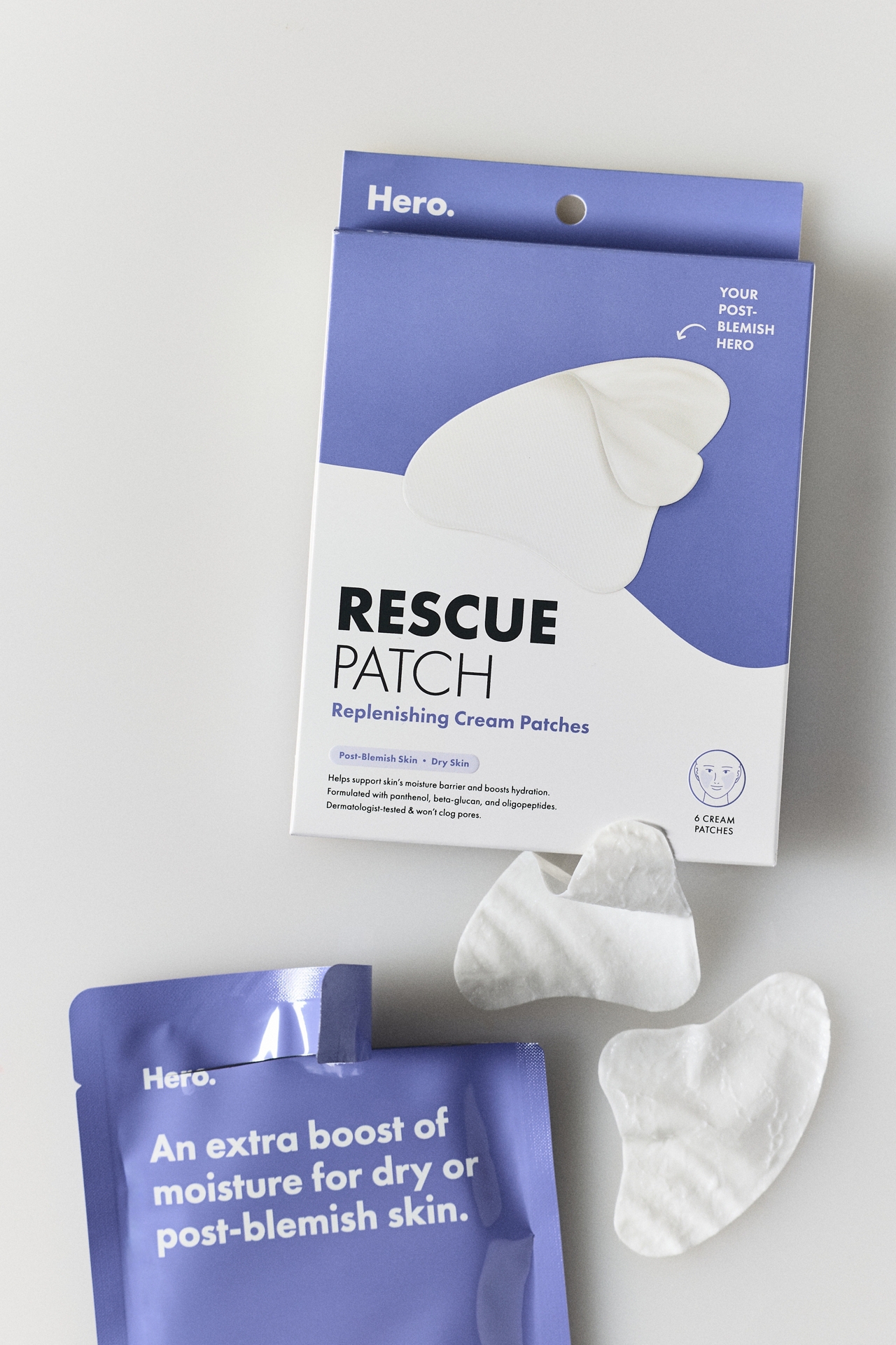 Inspired by Hero Cosmetics’ beloved Rescue Balm, these creamy patches deliver rich hydration to help skin bounce back from post-blemish dryness.