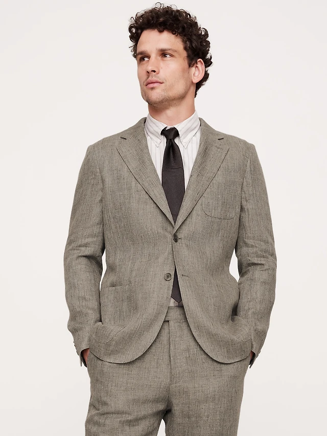 Herringbone Cotton-Linen Double-Breasted Suit Jacket