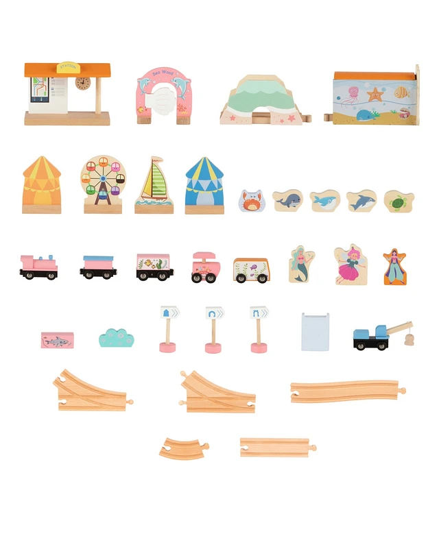 Hey Play 75-Piece Wooden Train Set with Play Table
