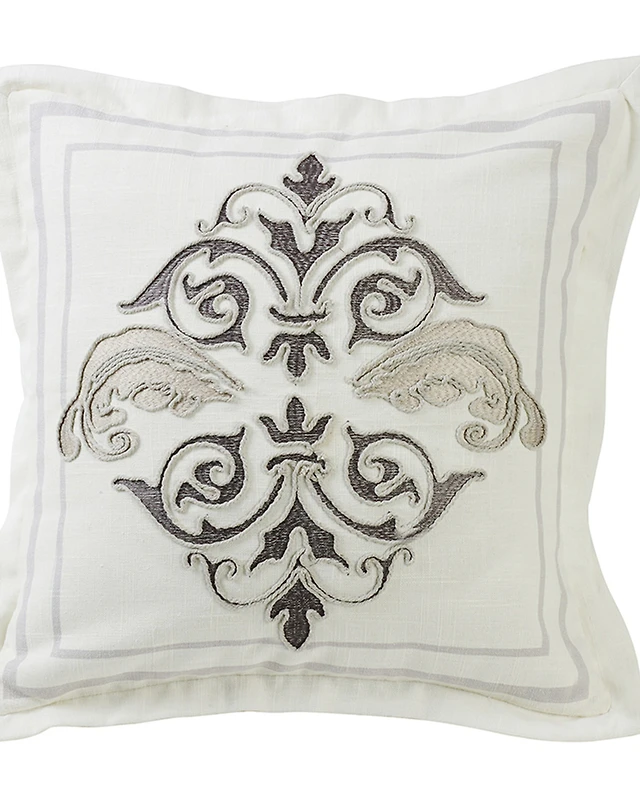 HiEnd Accents Charlotte Square Flanged and Outlined Embroidered Pillow