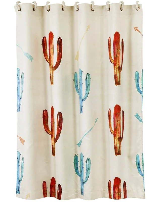 HiEnd Accents Cream Printed Cactus Shower Curtain