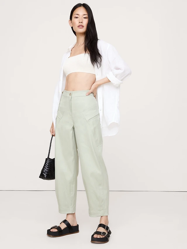 High-Rise Barrel Linen-Cotton Utility Pant