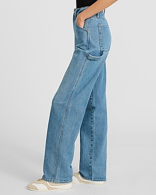 High Waisted Light Wash Relaxed Straight Carpenter Jeans