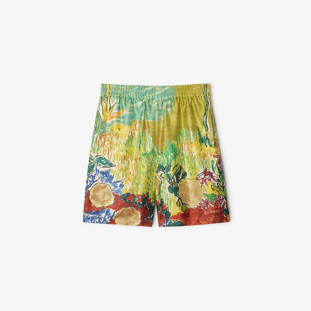 Highgrove Fountain Silk Shorts in Harbour green - Men | Burberry® Official