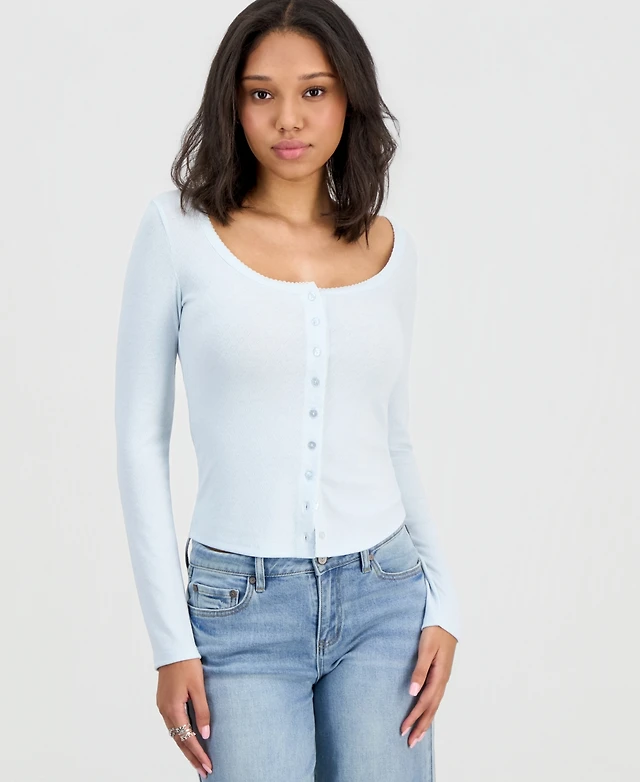 Hippie Rose Juniors' Jersey Knit Long-Sleeve Top