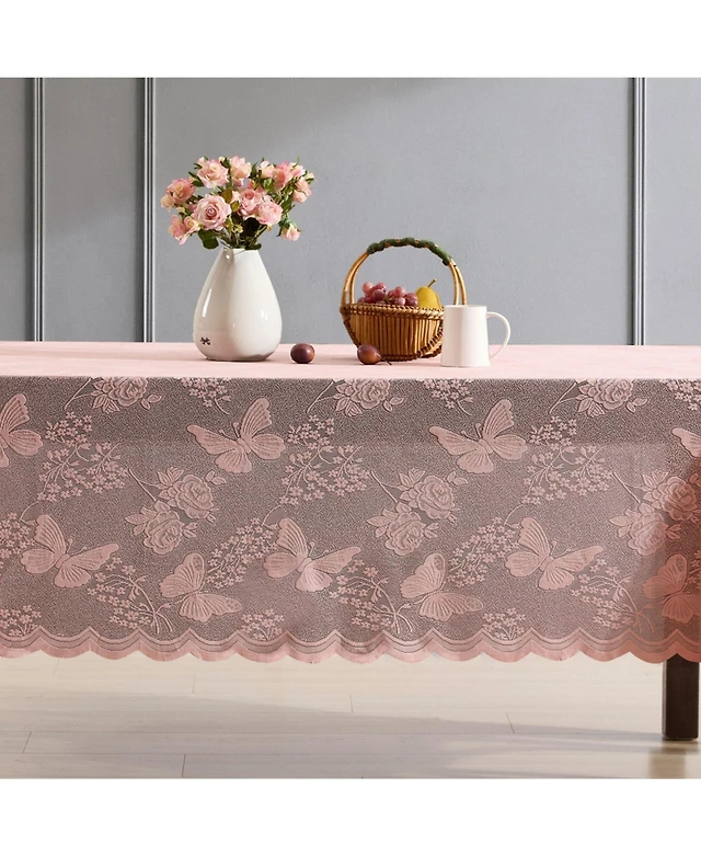 Hlc.me Butterfly Floral Lace Fabric Tablecloth, Lace Fabric Table Cloth for Rectangle Square Tables, Wrinkle Resistant