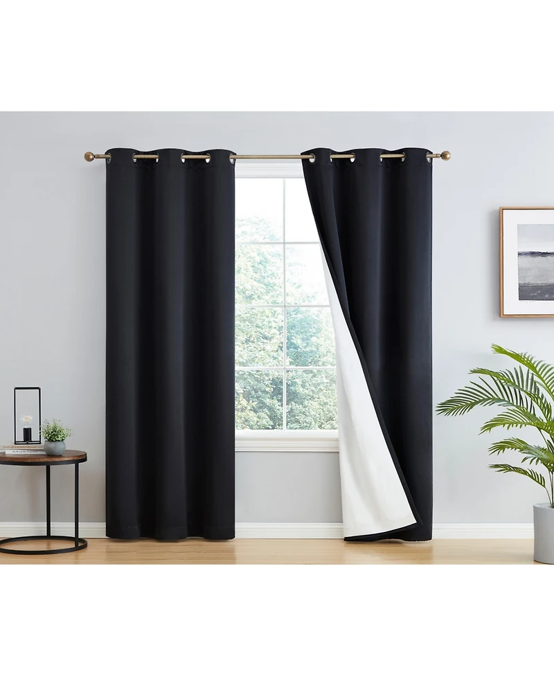 Hlc.me Dakota 100% Complete Blackout Lined Drapery with Double Layer Thermal Insulated Energy Efficient Window Curtain Grommet Panels for Bedroom & Li