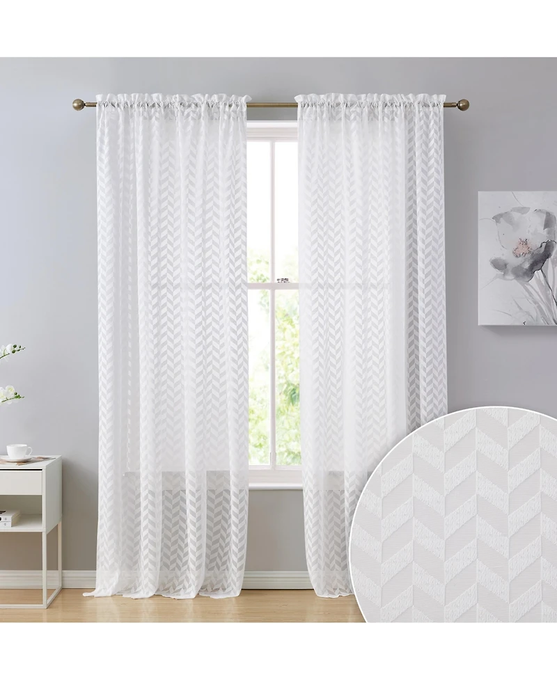Hlc.me Herringbone Thick Semi Sheer Premium Rod Pocket Window Curtain Panels for Bedroom & Living Room