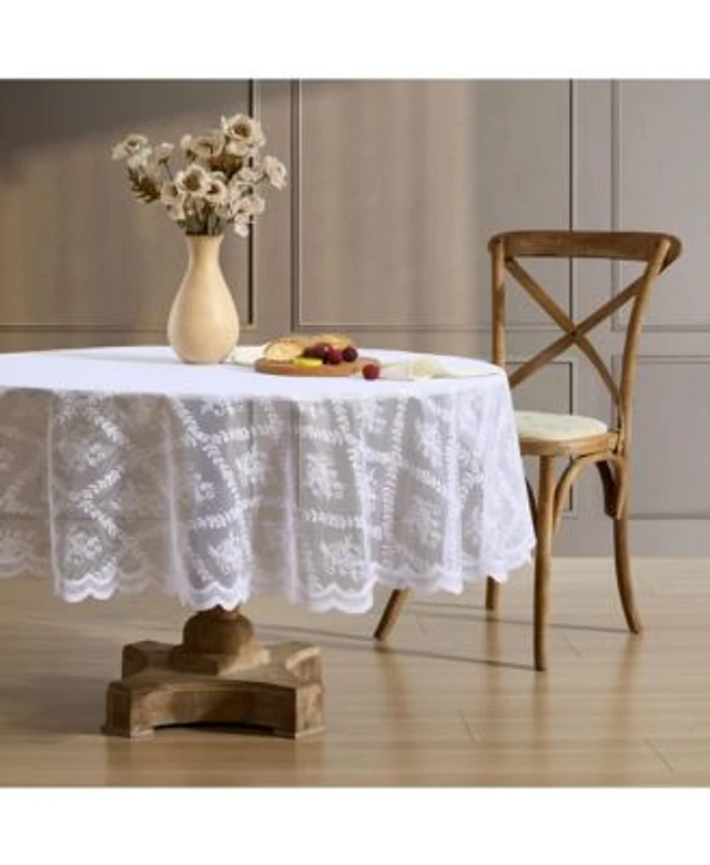 Hlc.Me Isabella Floral Lace Fabric Tablecloth Lace Fabric Table Cloth For Round Tables Wrinkle Resistant Tablecloth Patterned Scalloped Tablecloth