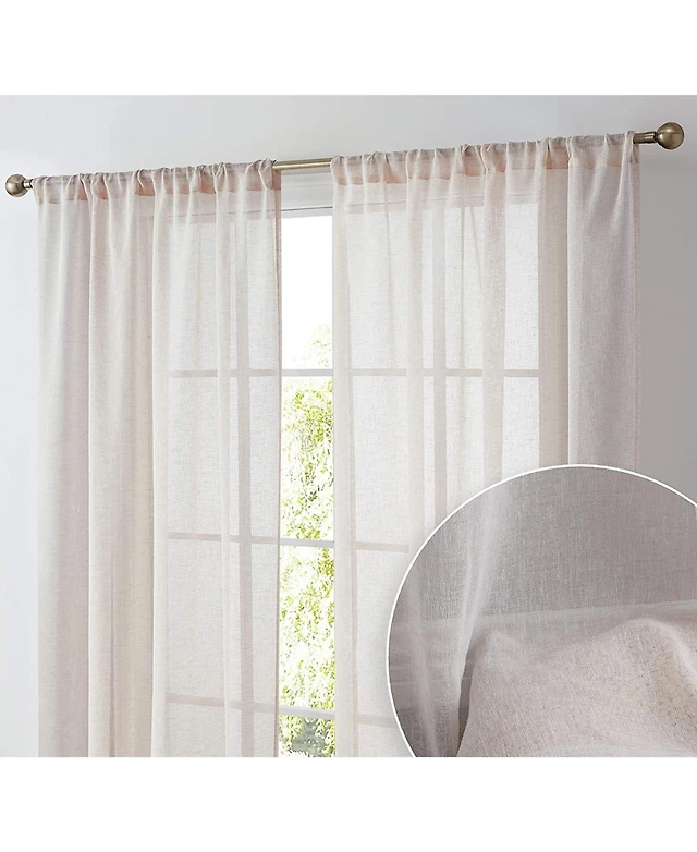 Hlc.me Penelope Faux Linen Textured Semi Sheer Privacy Sun Light Filtering Transparent Window Rod Pocket Thick Curtain Panels
