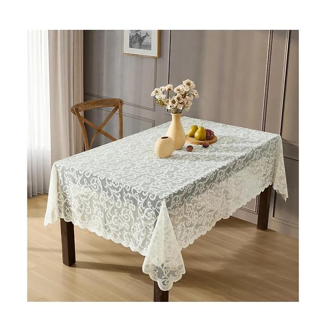 Hlc.me Scroll Lace Fabric Tablecloth, Lace Fabric Table Cloth for Rectangle Tables, Wrinkle Resistant Tablecloth