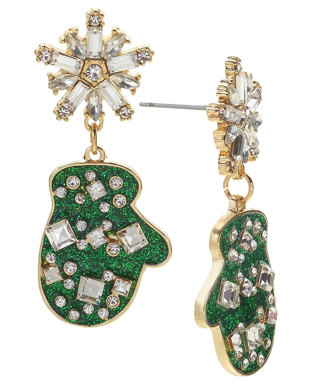 Holiday Lane Gold-Tone Crystal Snowflake & Glitter Mitt Drop Earrings, Created for Macy's