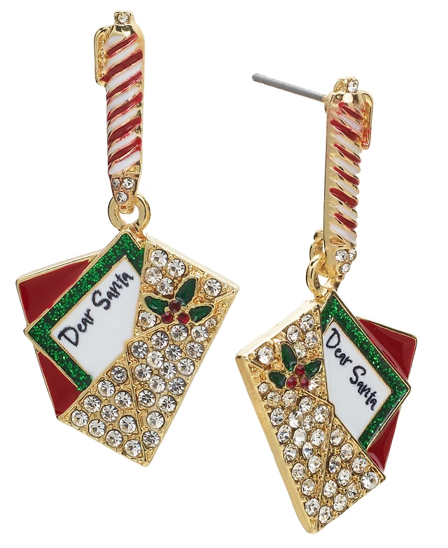 Holiday Lane Gold-Tone Pave Santa Letter Drop Earrings, Created for Macy's