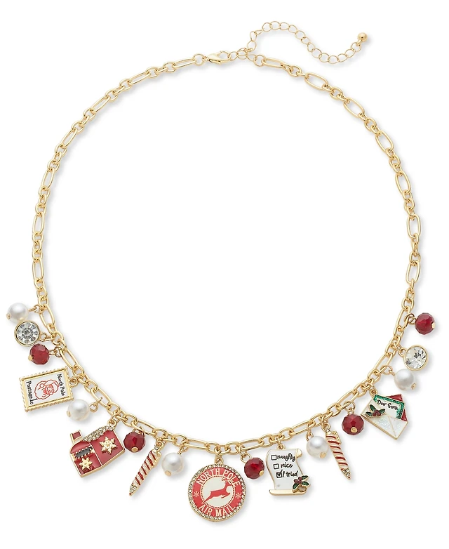 Holiday Lane Gold-Tone Santa Letter Charm Necklace, 18" + 3" extender, Created for Macy's