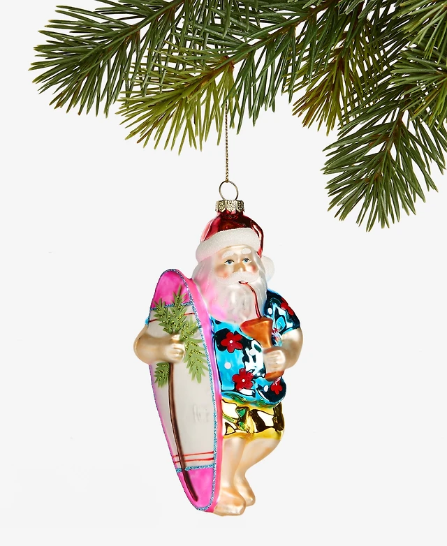 Holiday Lane Hawaii Glass Surfing Santa Ornament, Macy's Exclusive