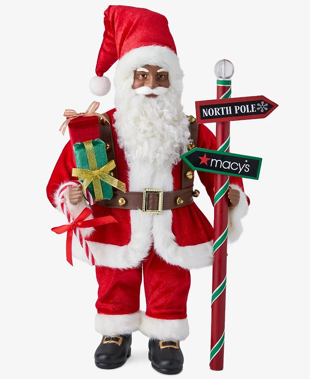 Holiday Lane Heritage African American Santa With Sign Post, Macy's Exclusive
