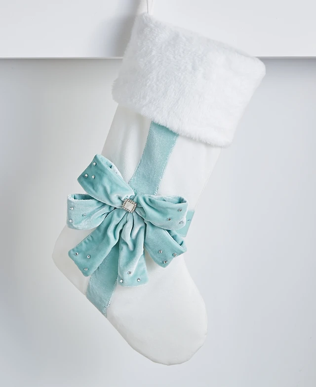 Holiday Lane Opulence Fuzzy White Blue Bow Stocking, Macy's Exclusive