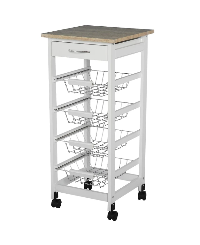 Homcom 32.25" Wood Rolling Kitchen Storage Cart on 360° Swivel Wheels, White
