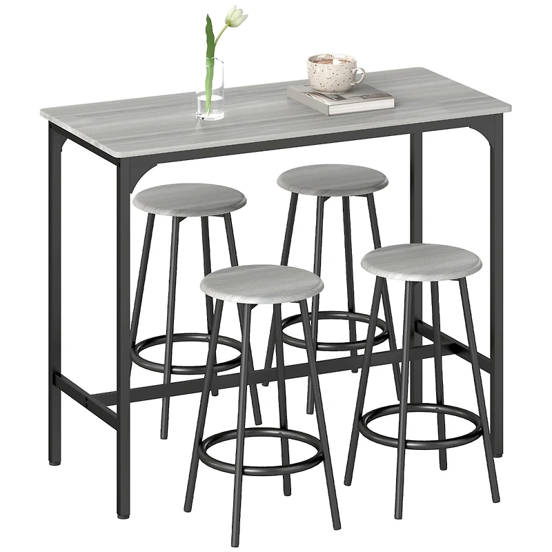 Homcom 5-Piece Rustic Bar Table and Chairs Set for Dining Room