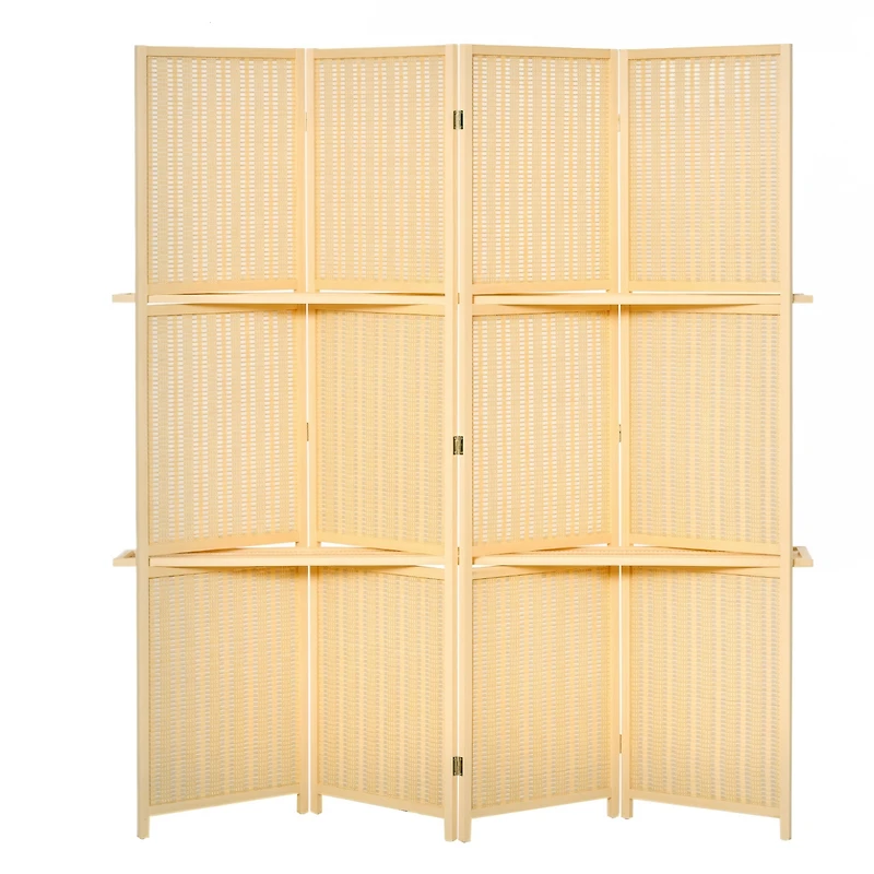 Homcom 6' Folding Privacy Screen Indoor Room Divider w/ 2 Open Display Shelves, Natural