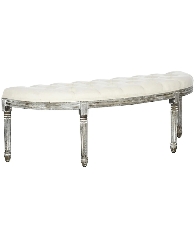 Homcom Vintage Semi-Circle Entryway Bench w/Tufted Upholste Fabric, Off