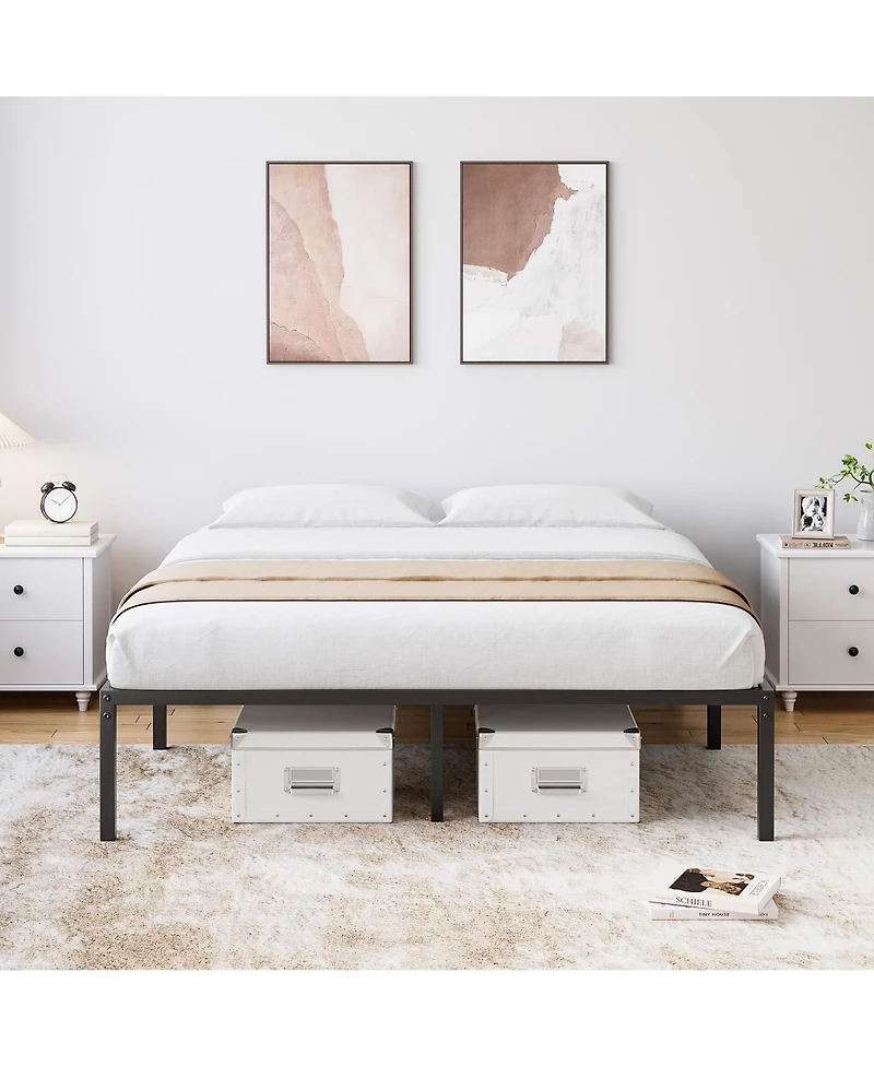 Industrial strength meets smart design. This heavy-duty metal platform bed frame supports up to 800 lbs, features 6 inches of under-bed storage clearance, and operates in complete silence. No box spring needed, 20-minute assembly-perfect for guest rooms, or small apartments.