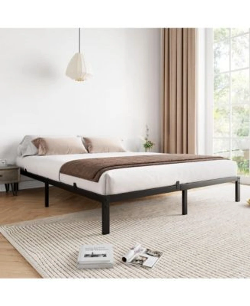 Homfan Metal Platform Bed Frame With Steel Slats Low Profile Mattress Foundation Underbed Space