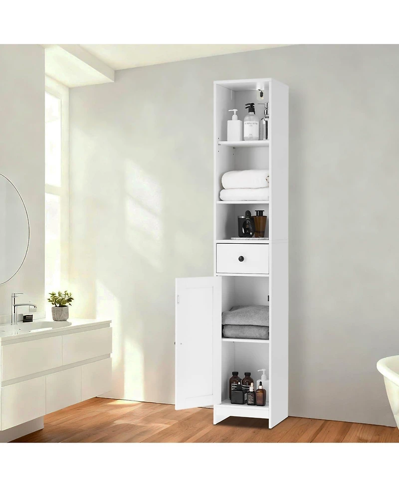 homfan Tall Bathroom Storage Cabinet, 3-Tier Skinny Freestanding Organizer with Doors & Open Shelves for Bathroom or Kitchen