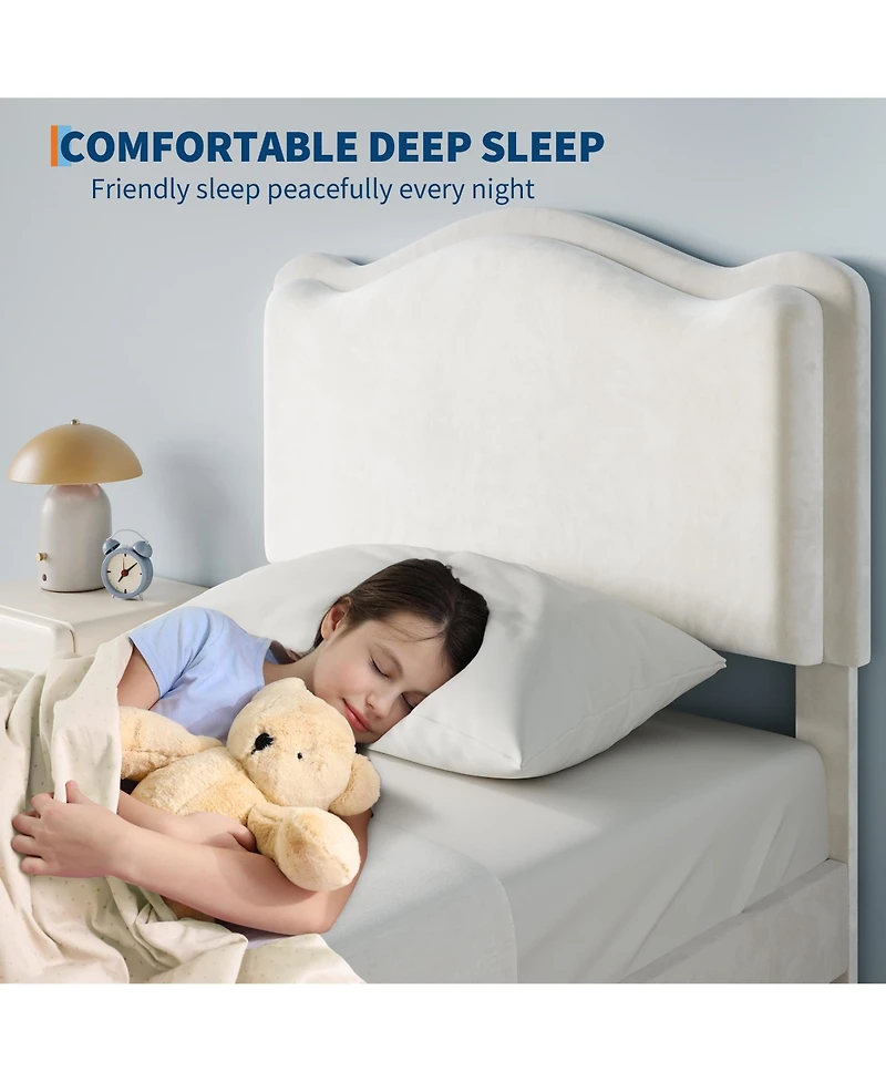 Transform Your Child s Bedroom with a Safe, Stylish and Functional Kids Bed Frame.Rounded corners, soft smooth fabric headboard, and expertly curved silhouette ensure best safety and comfort.