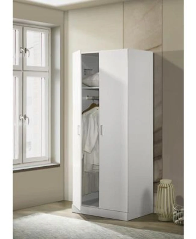Homlux 29.5w White Double Door Wardrobe With Shelf Hanging Rod For Organized Living