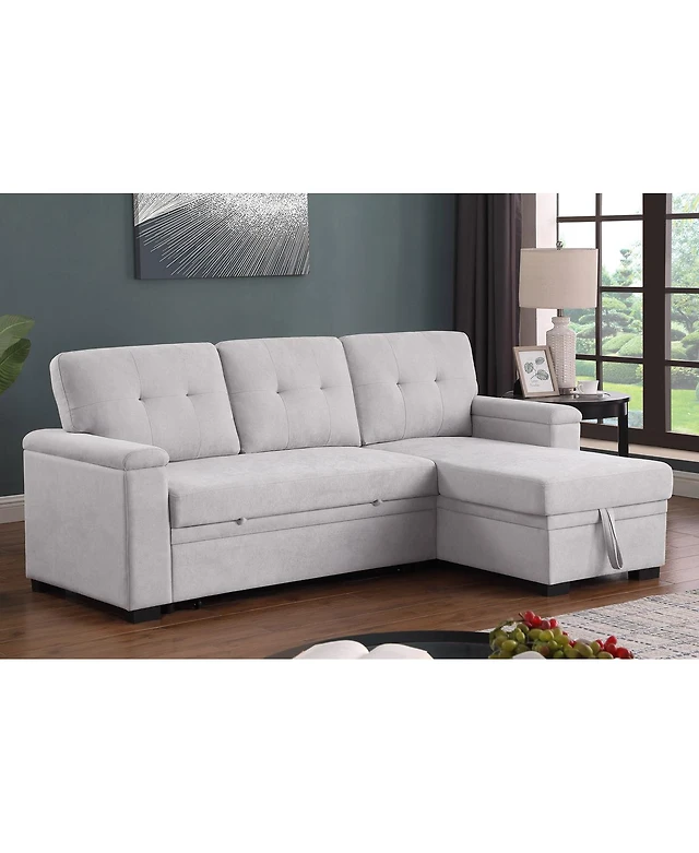 Homlux 84.5"W Light Gray Woven Fabric Reversible Sleeper Sectional Sofa with Storage Chaise